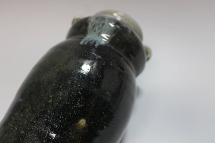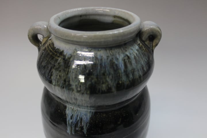父藻風の作で 耳付きで登り窯で焼成したため灰被りとなっています。