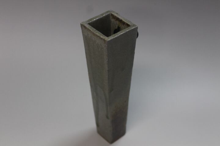 登り窯で焼成し、全体に灰釉を施釉した花入です。