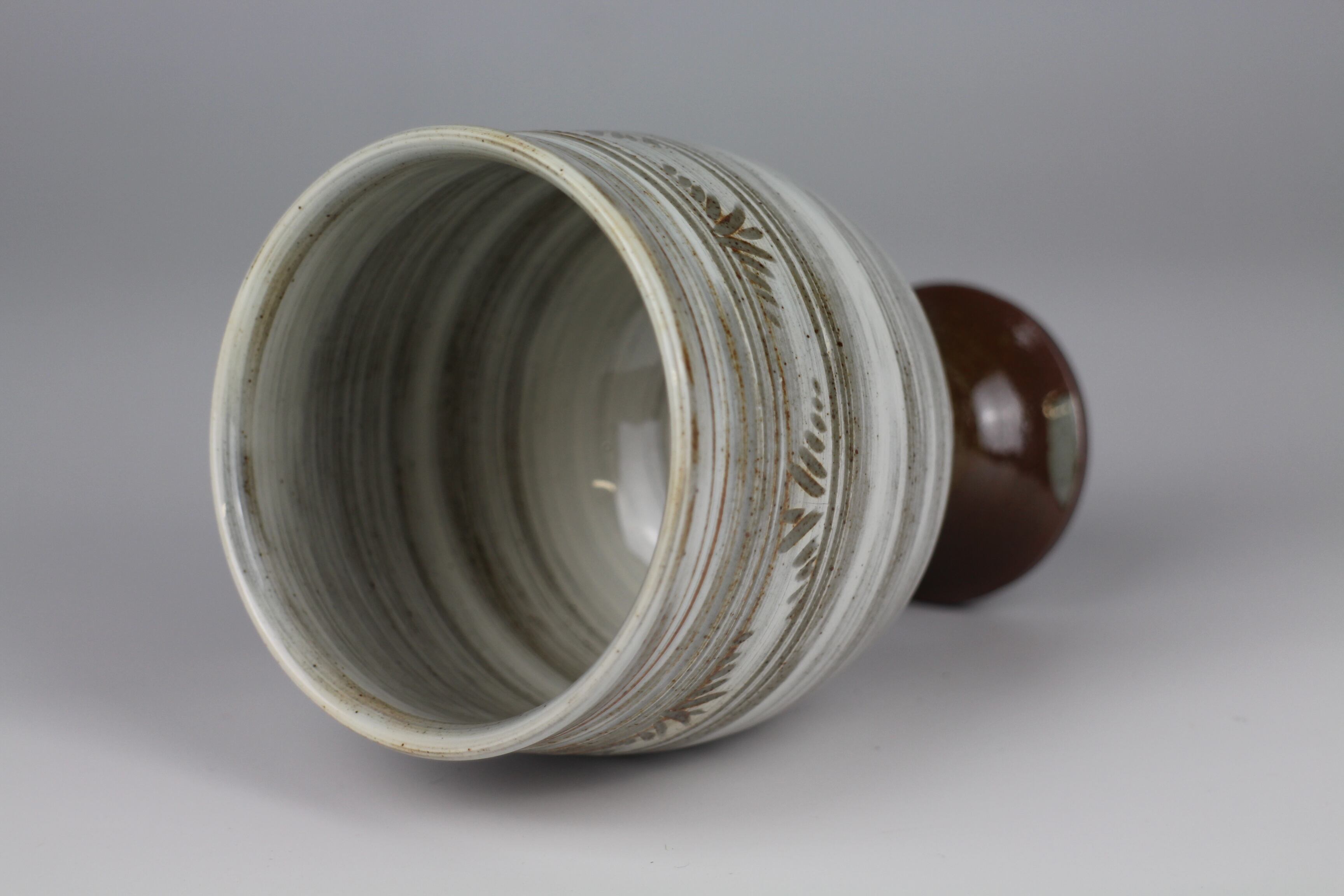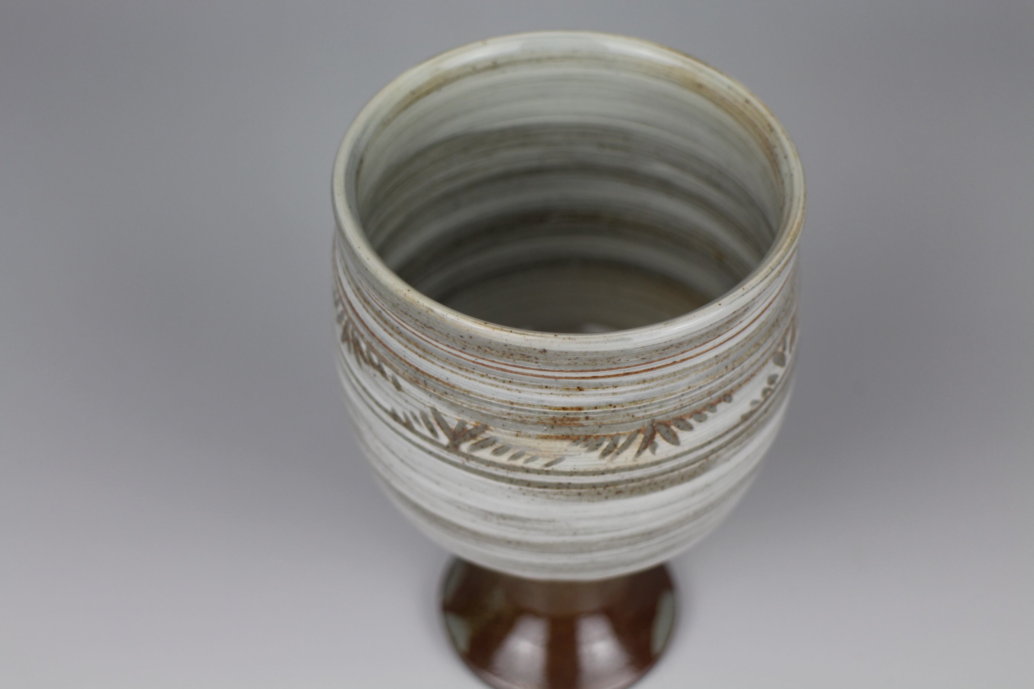 エンゴべを刷毛で塗り 彩飾した唐津彫刷毛目ワインゴブレットです。