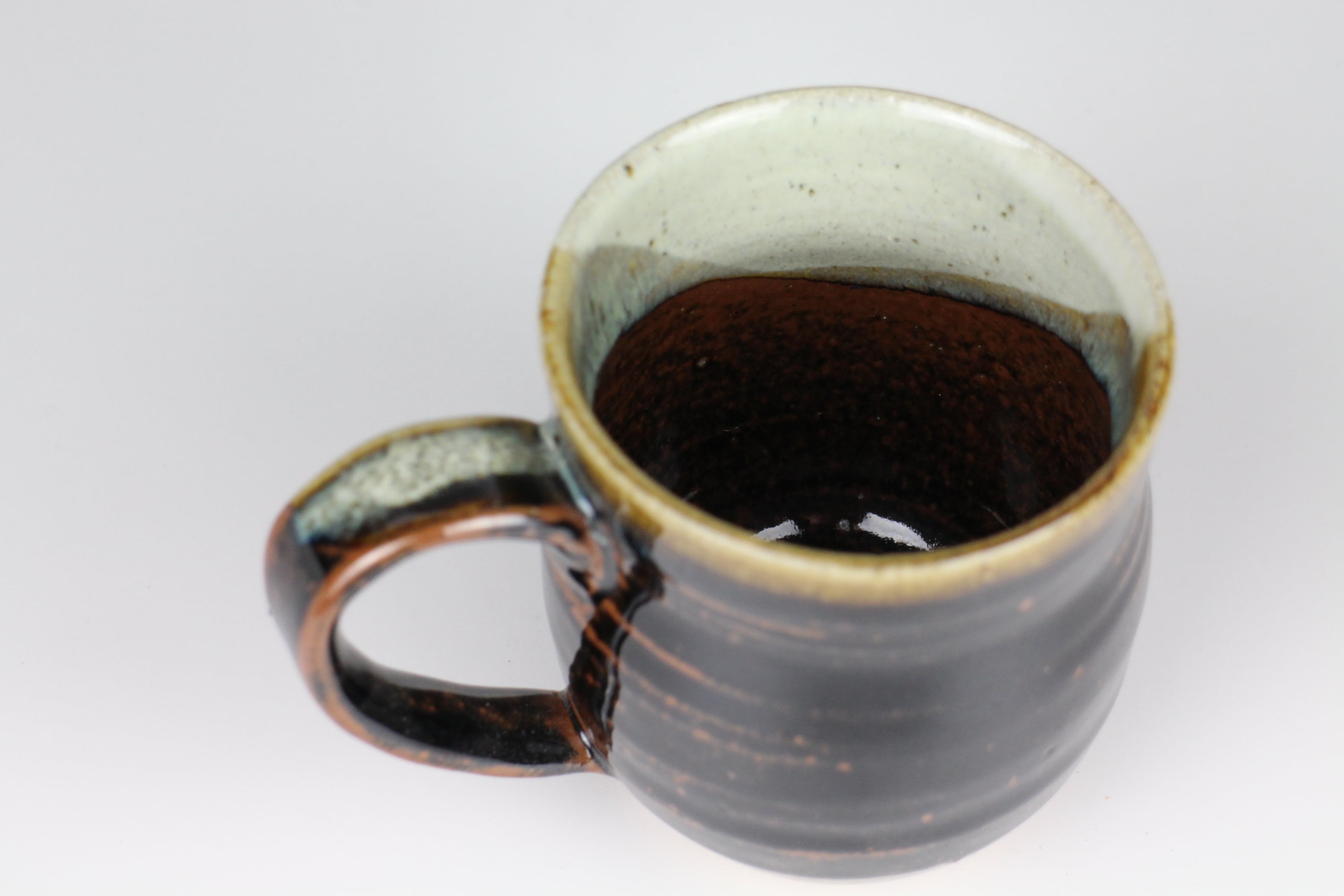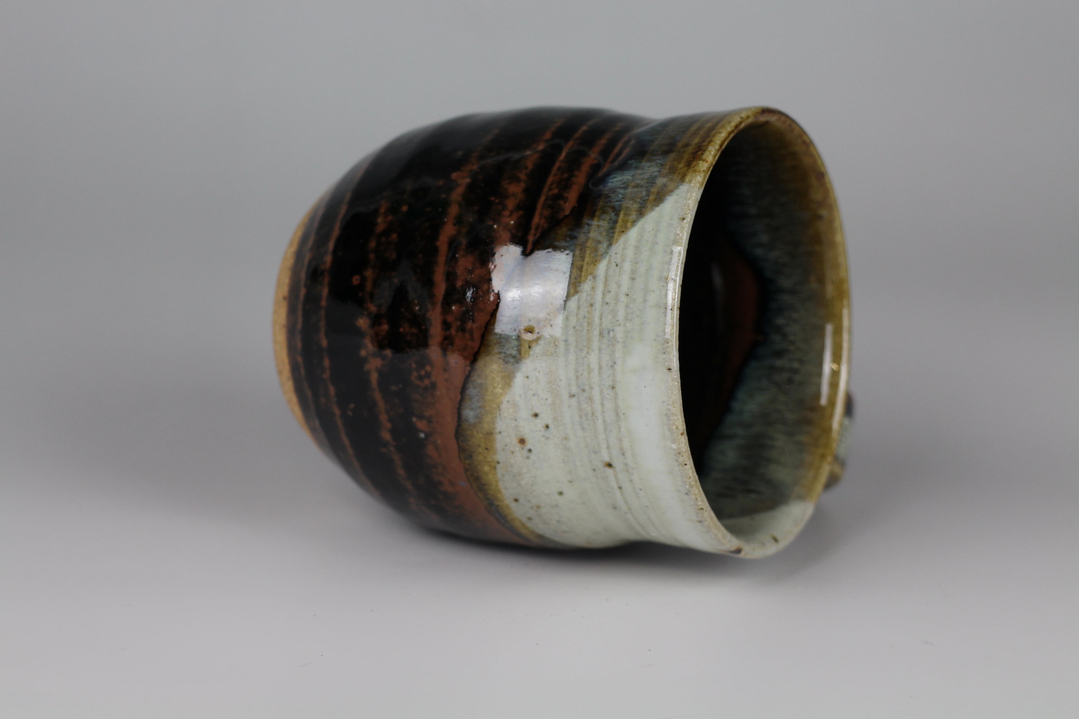 伝統釉のわら灰釉と飴釉を掛け分けした 朝鮮唐津の朝鮮唐津ミルクカップです。