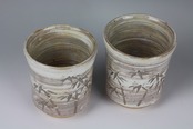 唐津竹彫刷毛目夫婦湯呑