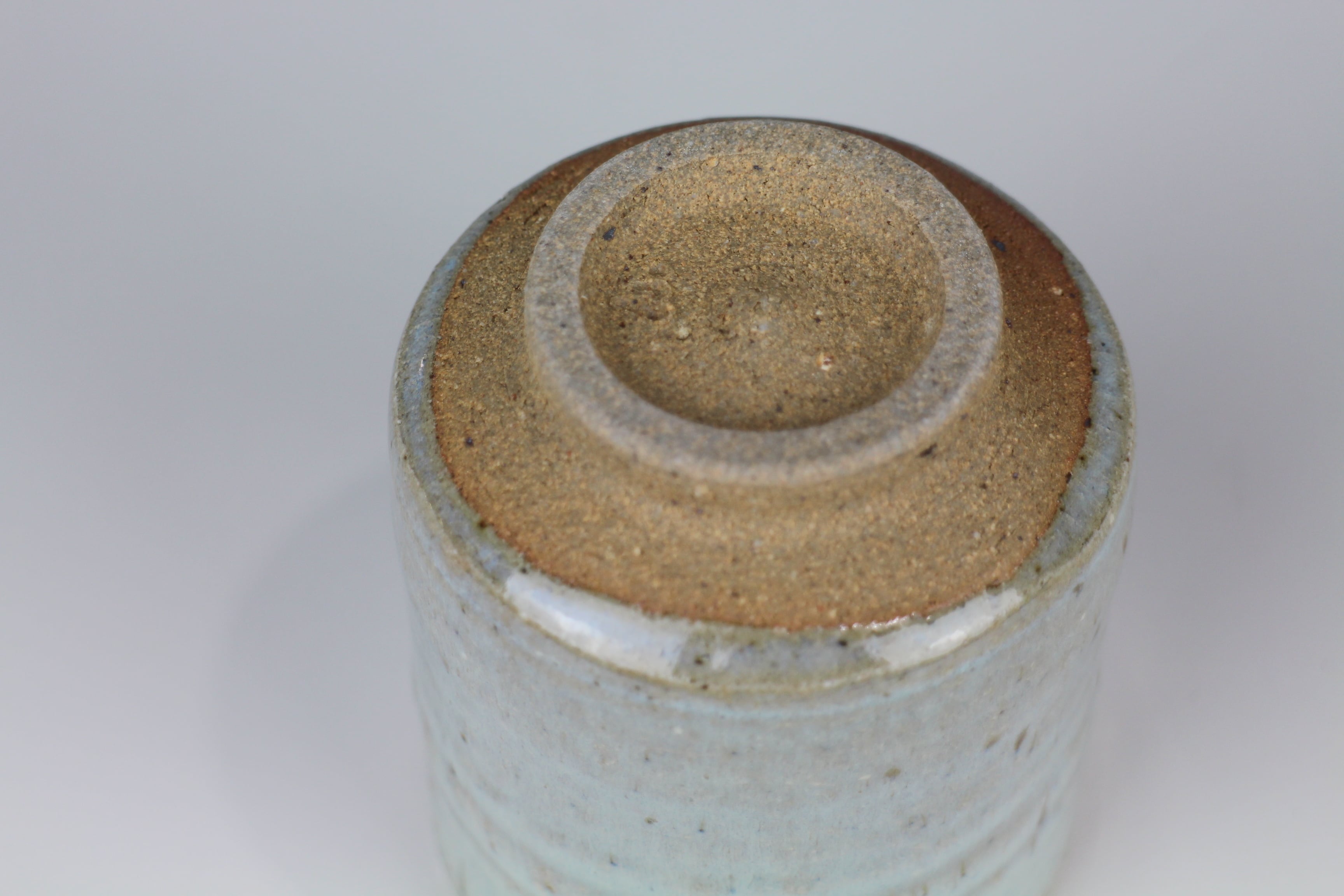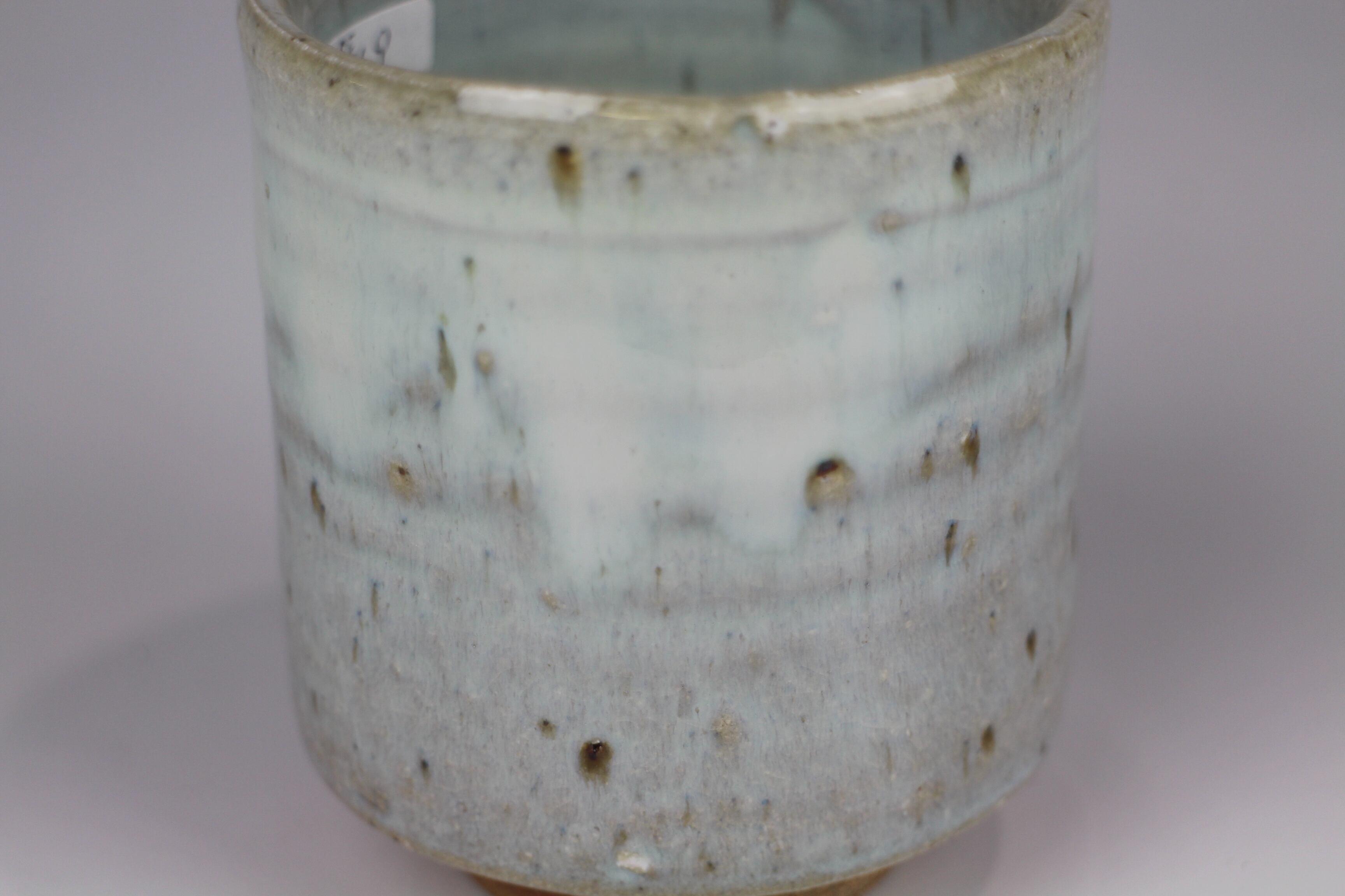 稲刈りの終わった田んぼで藁を焼き、その灰を利用して調合した 斑唐津湯呑です。